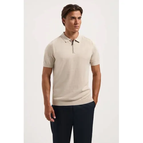Deze zandkleurige katoenen heren polo van Saint Steve is een praktische basic voor dagen waarop je er verzorgd uit wilt zien zonder dat het ingewikkeld wordt. De polo is fijn gebreid en heeft een moderne halve rits in plaats van de klassieke knoopsluiting. De sand kleur is zacht en neutraal, waardoor de polo makkelijk combineert met jeans, chino's of een nette broek.Verzorgde look, comfortabel gevoel Gemaakt van 100% katoen, wat zacht aanvoelt en prettig draagt in elk seizoen Fijn gebreide kwaliteit voor een nette, moderne uitstraling Halve rits aan de voorkant in plaats van knopen voor een eigentijdse twist Korte mouwen, ideaal voor onder een jasje of solo op warmere dagen Geribde boorden langs mouwen en zoom voor een aangesloten pasvorm Effen sand kleur die rustig oogt en makkelijk te combineren is Zonder borstzak voor een strakke en minimalistische lookVoor werk, weekend en alles ertusseninDe polo past bij veel momenten in je week. Naar kantoor met een nette broek en sneakers, in het weekend met een lichte jeans of op reis als luchtige, maar verzorgde optie. De halve rits laat je de hals net zo open of gesloten dragen als jij prettig vindt.Saint Steve: moderne knitwear voor elke dagSaint Steve richt zich op moderne knitwear voor heren met een cleane uitstraling. De ontwerpen zijn tijdloos en herkenbaar door de rustige kleuren en doordachte details. Met deze polo kies je voor een item dat seizoen na seizoen in je kast relevant blijft.Een rustige basis waarmee je in één keer verzorgd de deur uit gaat.