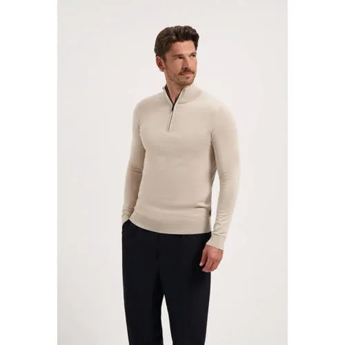 Deze Saint Steve heren trui Cas is een comfortabele basis voor elke dag. De trui heeft een opstaande kraag met halve rits, waardoor de hals eenvoudig meer open of juist gesloten gedragen wordt. Het fijn gebreide katoen voelt zacht aan en volgt soepel elke beweging. De effen kleur maakt de trui goed te combineren met verschillende broeken en jassen.Verzorgde details voor dagelijks draagcomfort Gemaakt van honderd procent katoen voor een prettig draaggevoel Fijn gebreide structuur voor een rustige, verzorgde uitstraling Lange mouwen met geribde boorden voor een mooie aansluiting Halve rits bij de hals voor eenvoudige ventilatie en extra comfort Opstaande kraag die de nek licht omsluit Effen ontwerp zonder zakken voor een strak silhouetStijlvol in uiteenlopende momentenMet de opstaande kraag en de halve rits sluit deze trui aan bij een nette uitstraling, maar ook bij ontspannen momenten thuis of tijdens een weekendje weg. De trui kan eenvoudig over een T shirt worden gedragen of direct op de huid.Saint Steve als vertrouwde keuzeSaint Steve richt zich op knitwear met een moderne en verzorgde uitstraling. Het merk combineert comfortabele materialen met doordachte pasvormen en rustige designs. Zo ontstaat kleding die prettig draagt en gemakkelijk in verschillende outfits past.Met deze trui komt er een stijlvolle en comfortabele basis in de garderobe bij.