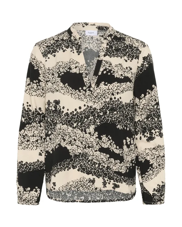 SAINT TROPEZ Blouse ‘Eda’ stone grey / donkergrijs / zwart