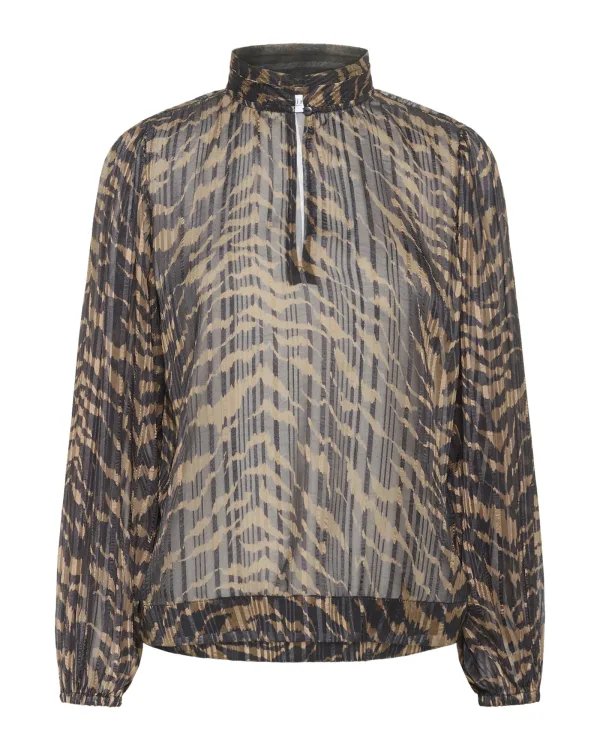 SAINT TROPEZ Blouse ‘SZNesta’ lichtbruin / zwart