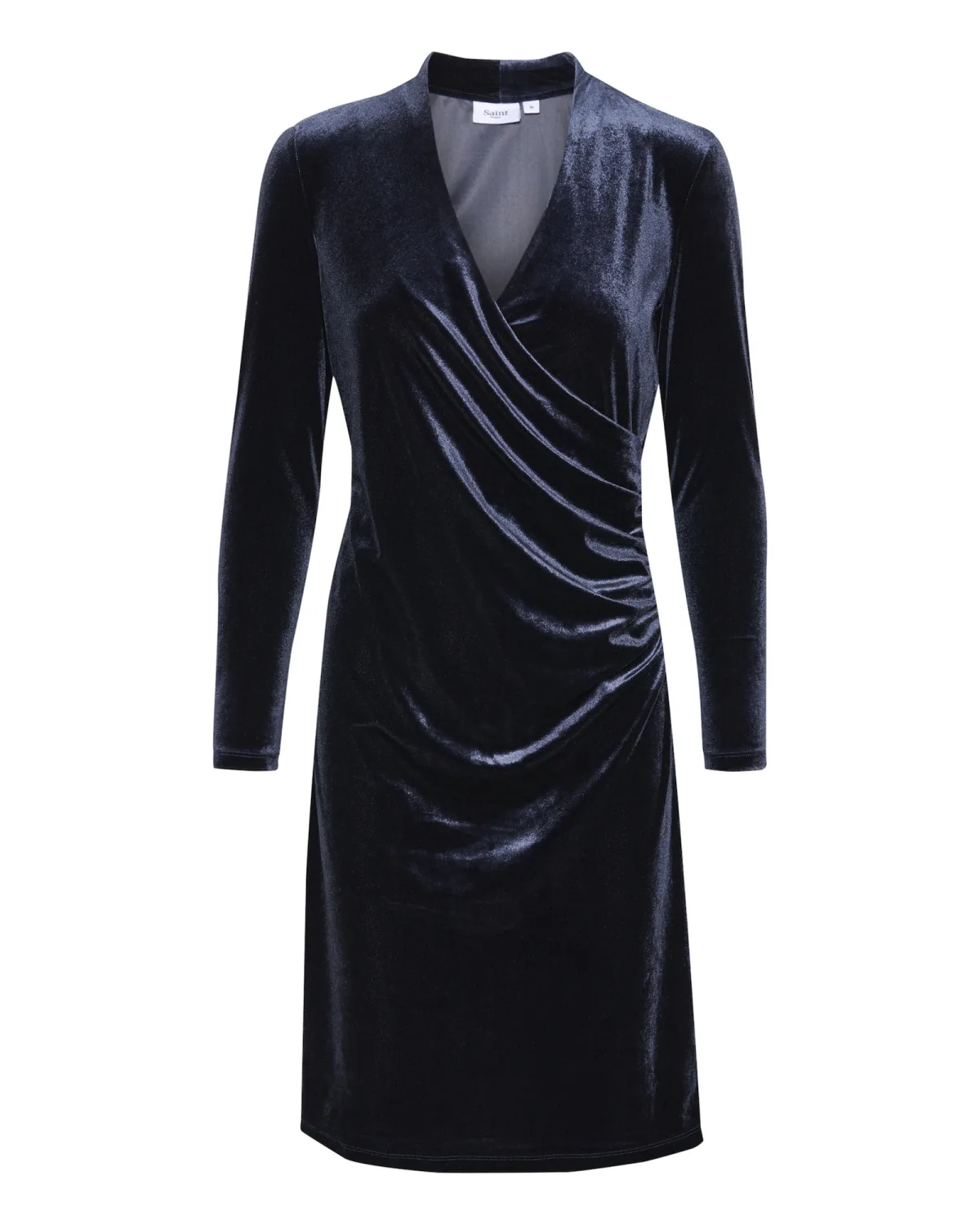 Design: Gevoerde zoom/rand, Diepe snit/decolleté; Materiaal: Fluweel/Nicky Velours; Halstype: V-hals; Motief: Effen; Details: Gedrapeerd, Wikkel design; Extra's: Voelt zacht aan; Lengte: Knielengte; Snit: Recht; Pasvorm: Normale pasvorm; Armlengte: Lange mouw
