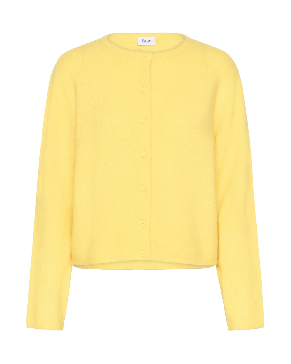 Dames vest met ronde hals, lange mouwen en knoopsluiting voor. Recht model biedt comfort en veelzijdigheid voor alledaags gebruik.