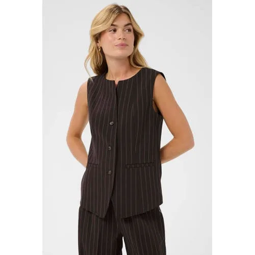 Saint Tropez gilet met krijtstreep donkerbruin