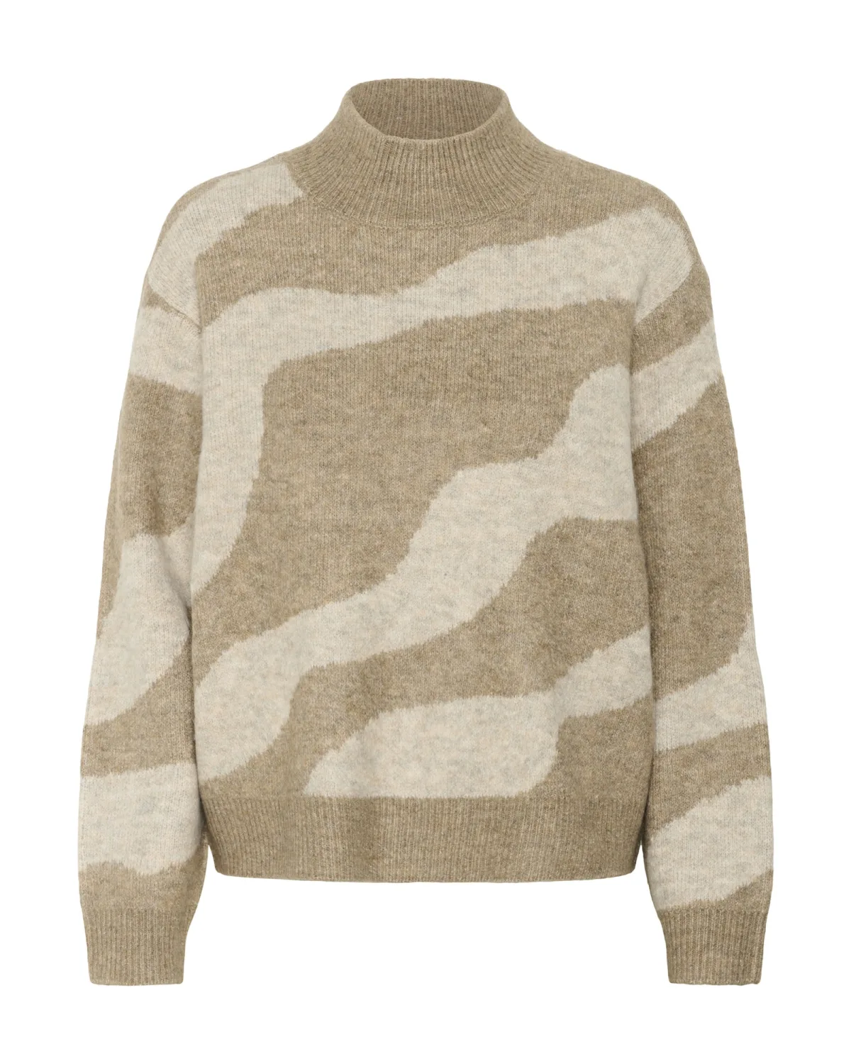 Design: Geribd ceintuurtje, Staande kraag; Materiaal: Knitwear; Halstype: Opstaande kraag; Extra's: All-over patroon; Pasvorm: Normale pasvorm; Armlengte: Lange mouw; Lengte: Normale lengte
