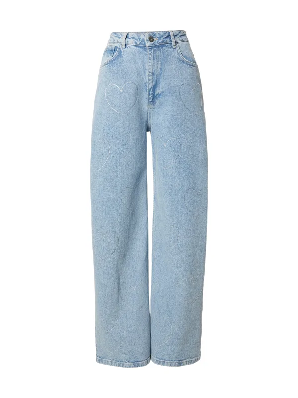 Design: Ritssluiting; Materiaal: Denim; Motief: Effen; Extra's: Met halfedelstenen, Riemlussen; Wassing: Light washed; Lengte: Lang/maxi; Pasvorm: Wide leg; Taillehoogte: Mid waist