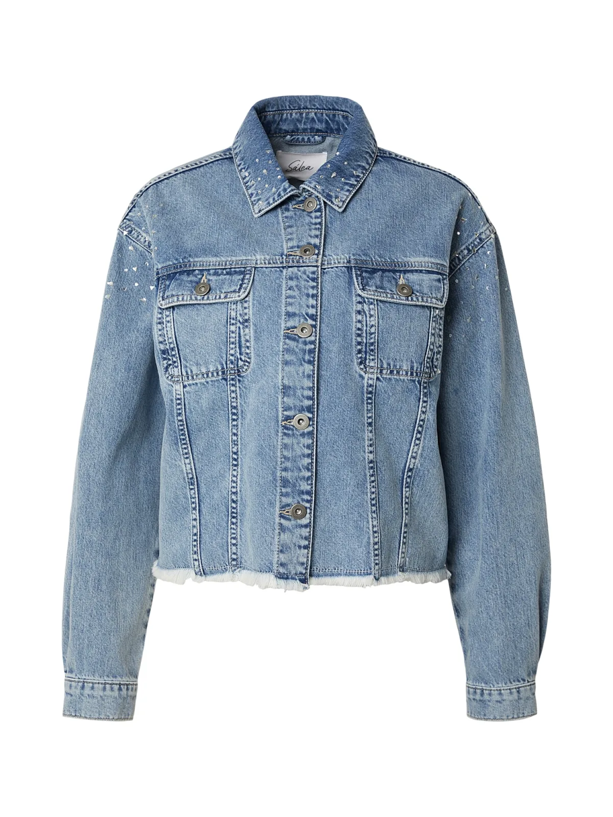 Design: Knop placket, Turn-down kraag, Opgezette zakken; Voering: Niet gevoerd; Materiaal: Denim; Motief: Effen; Extra's: Met halfedelstenen; Pasvorm: Normale pasvorm