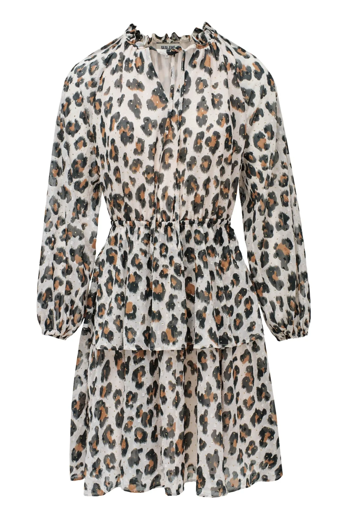 Design: Gevoerde zoom/rand, Om te knopen/binden; Type sluiting: Snoersluiting; Halstype: Ronde hals; Motief: Dierenprint; Details: Ruches, Volant; Extra's: All-over patroon, Gladde stof; Lengte: Knielengte; Pasvorm: Normale pasvorm; Armlengte: Lange mouw