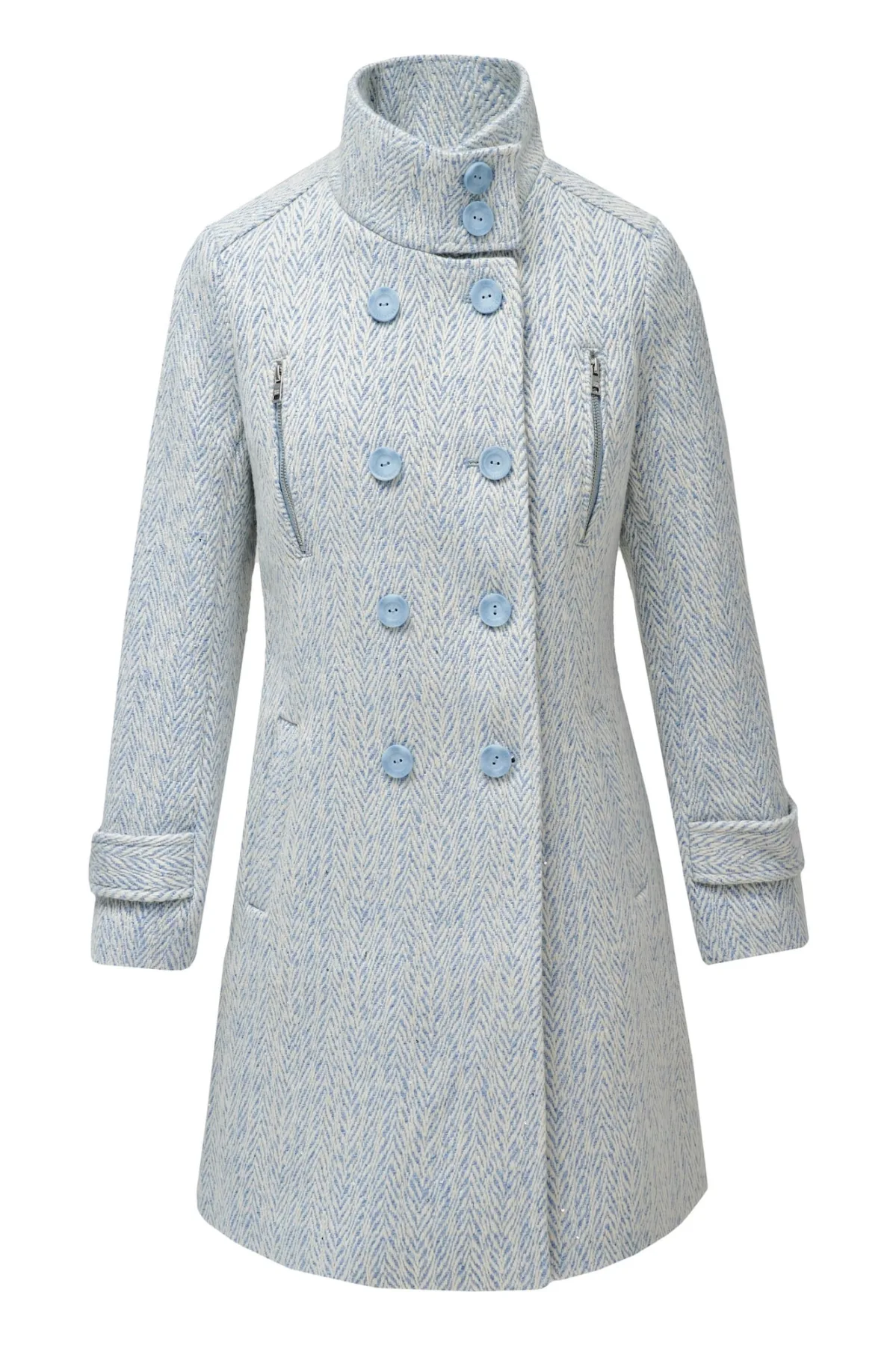 Type mantel: Klassieke mantel; Type sluiting: Knoopsluiting; Voering: Licht gevoerd; Materiaal: Wol; Motief: Visgraat; Pasvorm: Slanke pasvorm; Lengte: Korte pasvorm