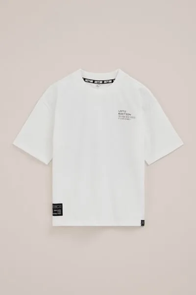 Voor boys met een eigen stijl. Dit shirt heeft een oversized fit en is afgewerkt met een ronde ribhals en korte mouwen. Op de borst staat een kleine tekst- en barcodeprint, op de rug een grote stoere microprint met ‘Salty Dog’.