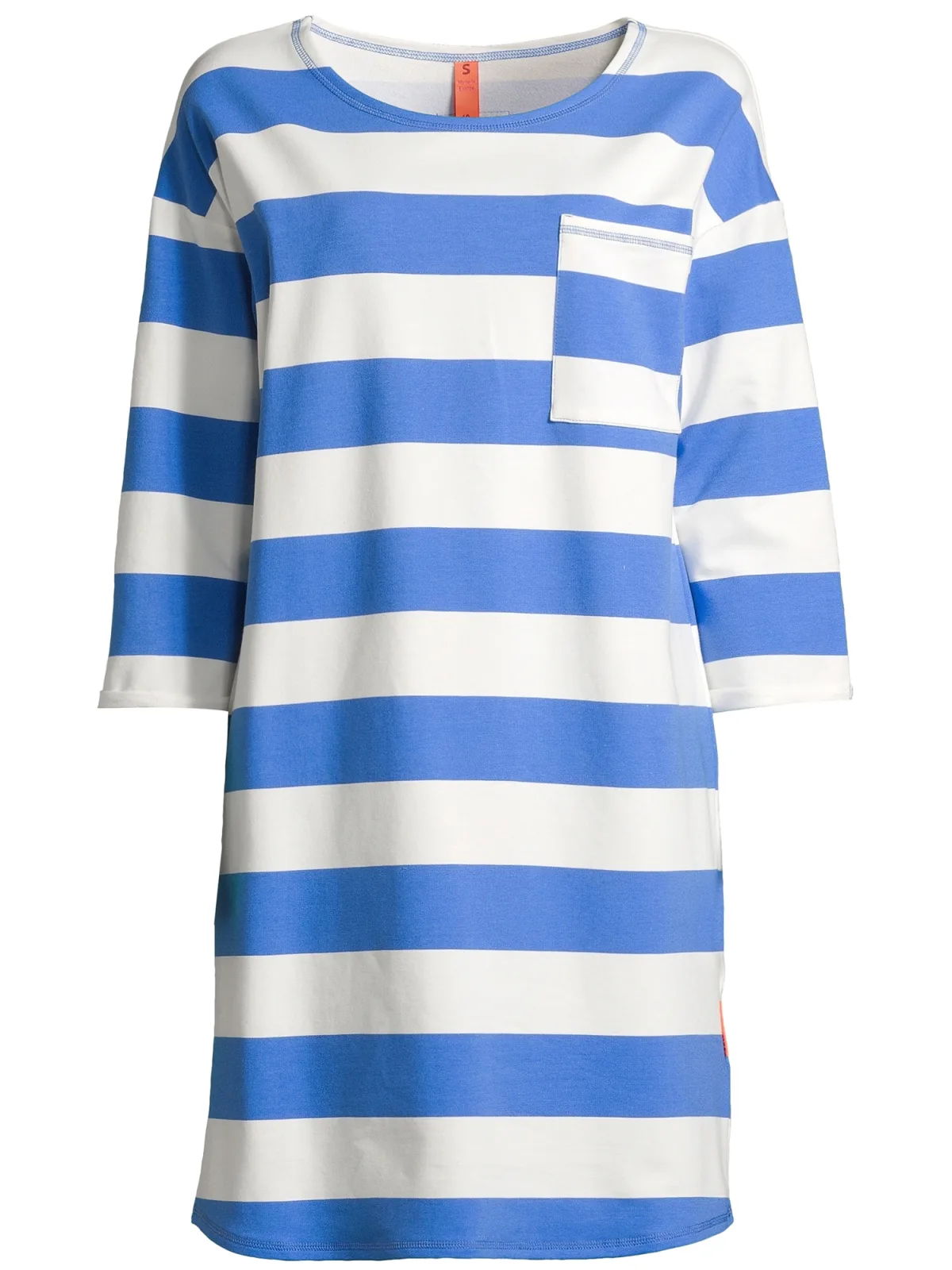 Design: Borstzak; Type sluiting: Gesloten; Materiaal: Jersey; Halstype: Ronde hals; Motief: Gestreept; Extra's: Voelt zacht aan; Lengte: Kort/mini; Snit: Recht; Pasvorm: Losse pasvorm; Armlengte: Driekwart mouw