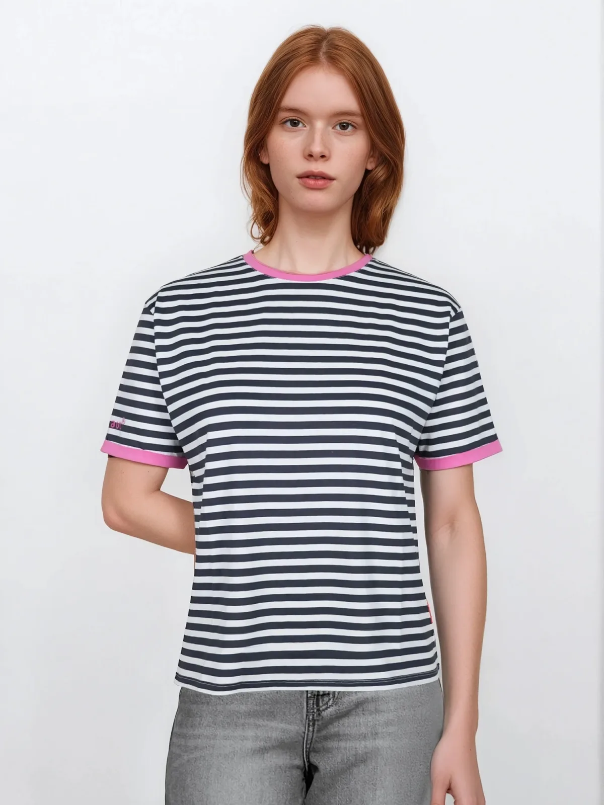 Design: Gevoerde zoom/rand, Vierkant model; Type sluiting: Gesloten; Materiaal: Katoen; Halstype: Ronde hals; Motief: Gestreept; Extra's: All-over patroon, Op staal naden; Pasvorm: Losse pasvorm; Armlengte: Halve mouw; Lengte: Normale lengte