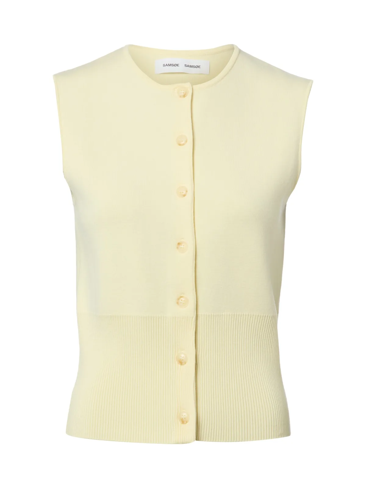 Specificaties: Samsøe Samsøe Gebreide bodywarmer ‘ Saanne ‘ crème / geel