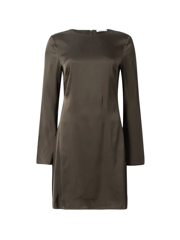 Design: Gevoerde zoom/rand, Rug rits; Type sluiting: Ritssluiting; Materiaal: Satijn; Halstype: Ronde hals; Motief: Effen; Extra's: Op staal naden, Gladde stof; Lengte: Kort/mini; Snit: Recht; Pasvorm: Normale pasvorm; Armlengte: Lange mouw