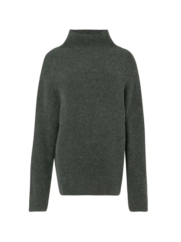 Design: Geribbelde kraag, Geribd ceintuurtje, Overcut schouder; Materiaal: Knitwear; Halstype: Opstaande kraag; Motief: Mélange; Extra's: Fully fashioned, Voelt zacht aan; Pasvorm: Losse pasvorm; Armlengte: Lange mouw; Lengte: Normale lengte