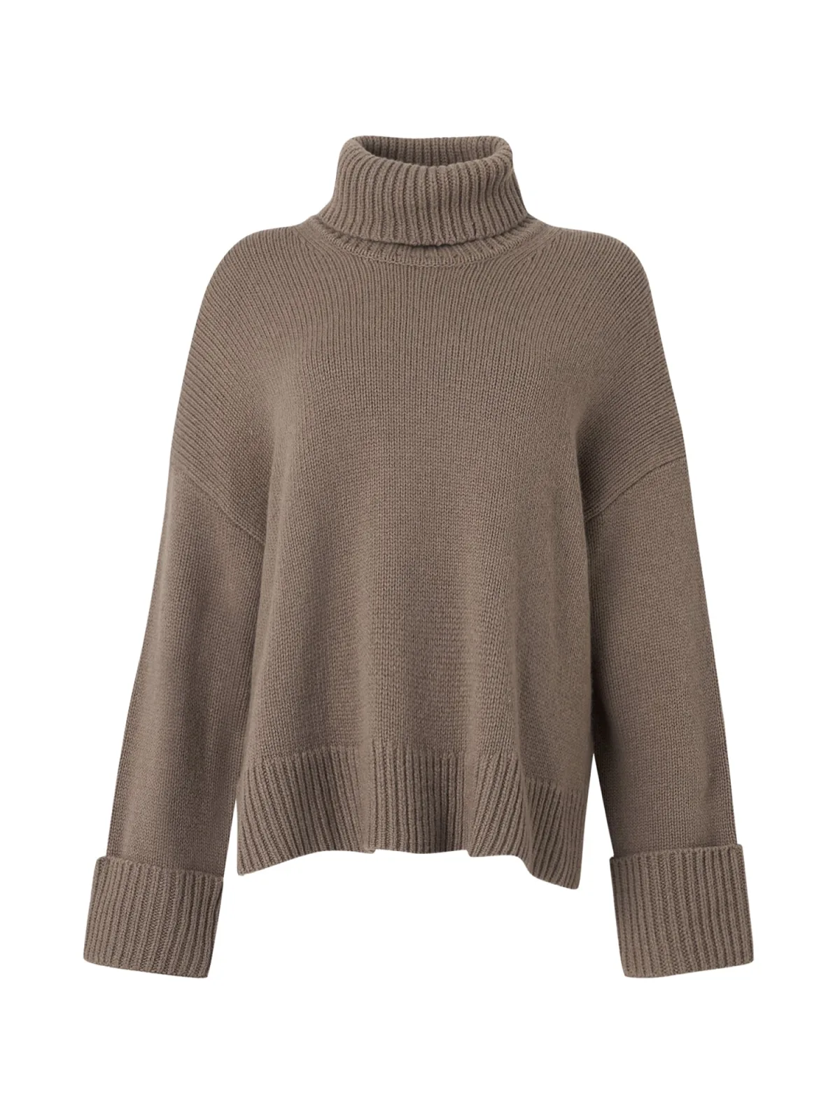 Design: Geribbelde kraag, Extra lange mouwen, Geribd ceintuurtje, Overcut schouder; Materiaal: Knitwear; Halstype: Col; Motief: Effen; Extra's: Fully fashioned, Met textuur, Voelt zacht aan; Pasvorm: Losse pasvorm; Armlengte: Lange mouw; Lengte: Normale lengte