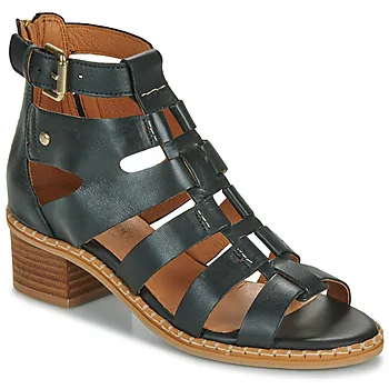 Pikolinos damessandalen met blokhak, zwart leer - Blanes
