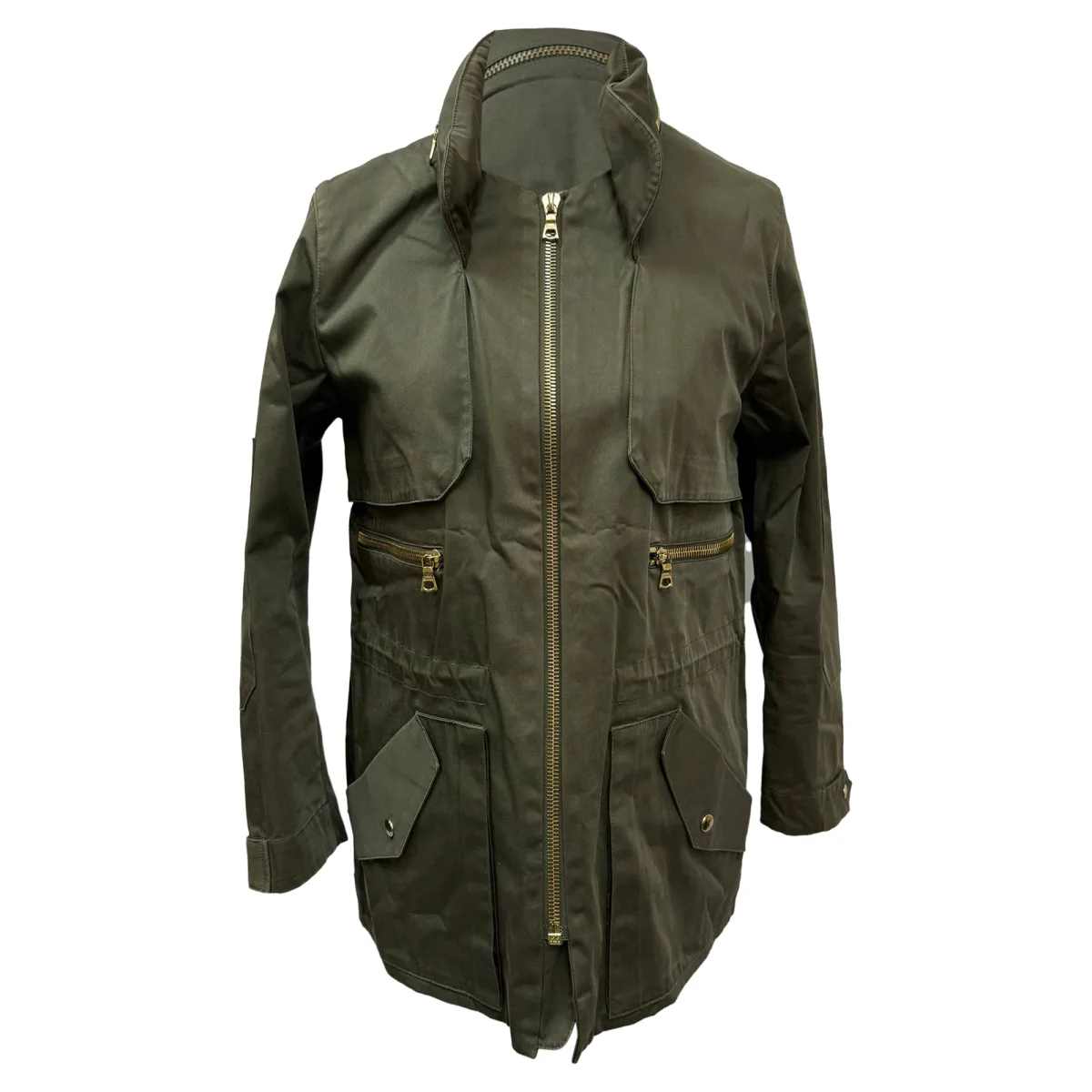 Sandro Paris Regen Ritsjack in Olijfgroen Katoen