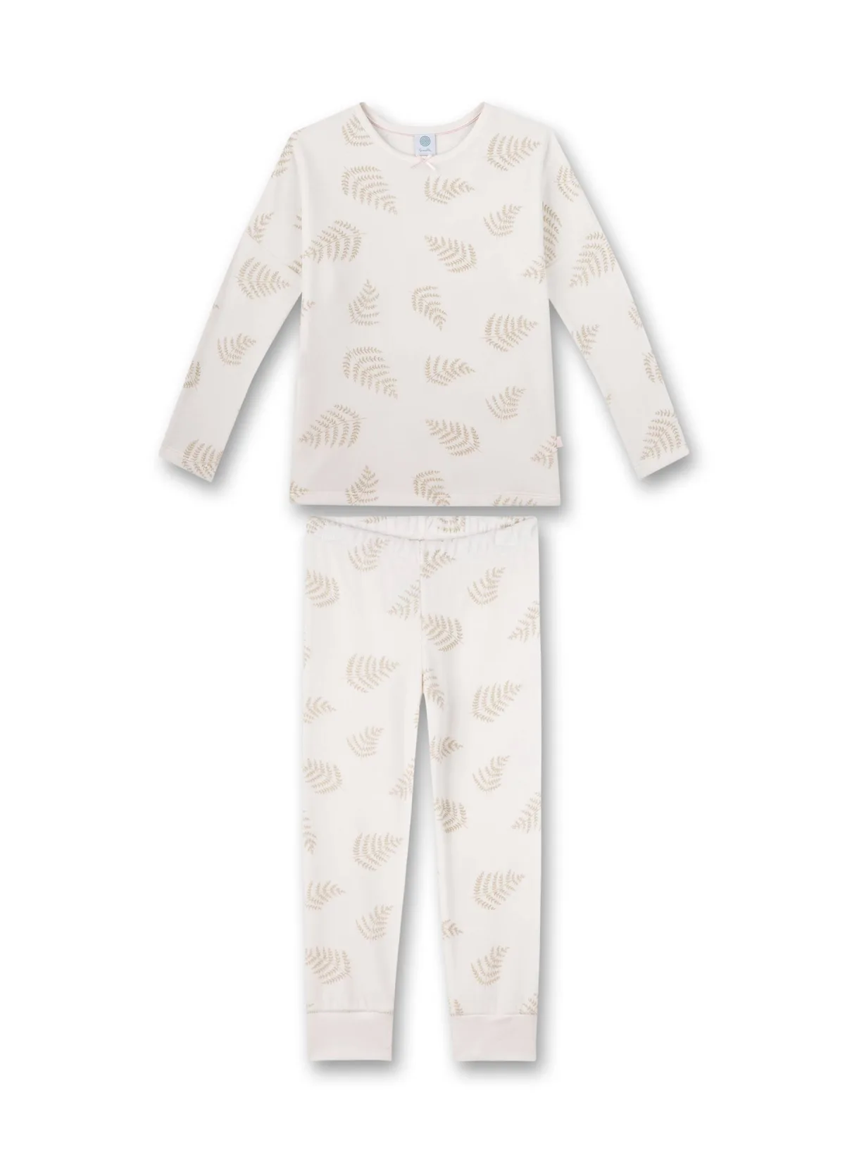 Pyjama-set voor meisjes van het merk Sanetta. Pyjama's met bladerenpatroon. Top met een klein strikje bij de hals. Broek met boorden en elastische tailleband. Comfortabele biologische katoenkwaliteit.