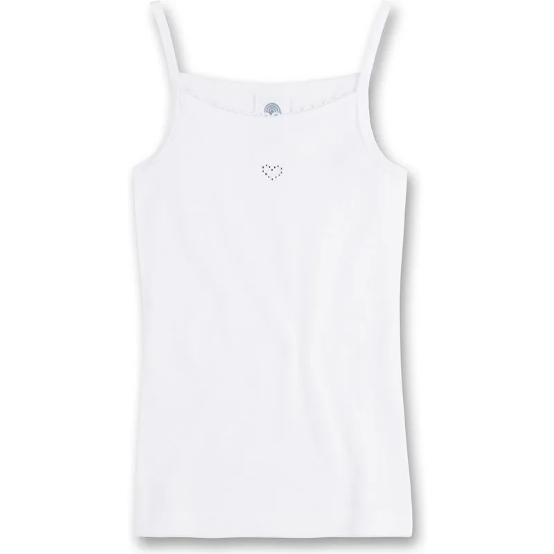 Onderhemdje voor meisjes van het merk Sanetta met een prachtig hartje van strasssteentjes. Katoen uit gecontroleerde biologische teelt. Comfortabel om te dragen.