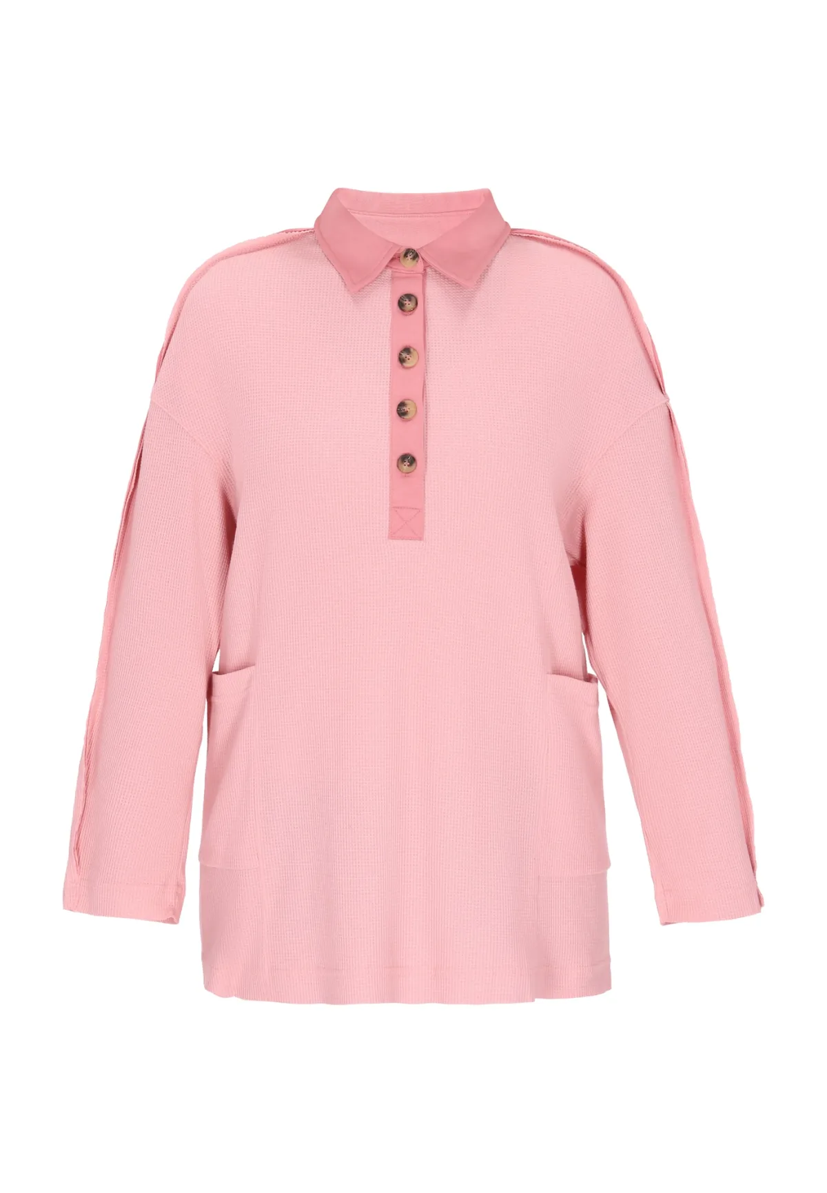Design: Opgezette zakken, Knop sluiting; Type sluiting: Knoopsluiting; Halstype: Polokraag; Motief: Color-Blocking; Extra's: Wafelstructuur; Pasvorm: Normale pasvorm; Armlengte: Lange mouw; Lengte: Normale lengte