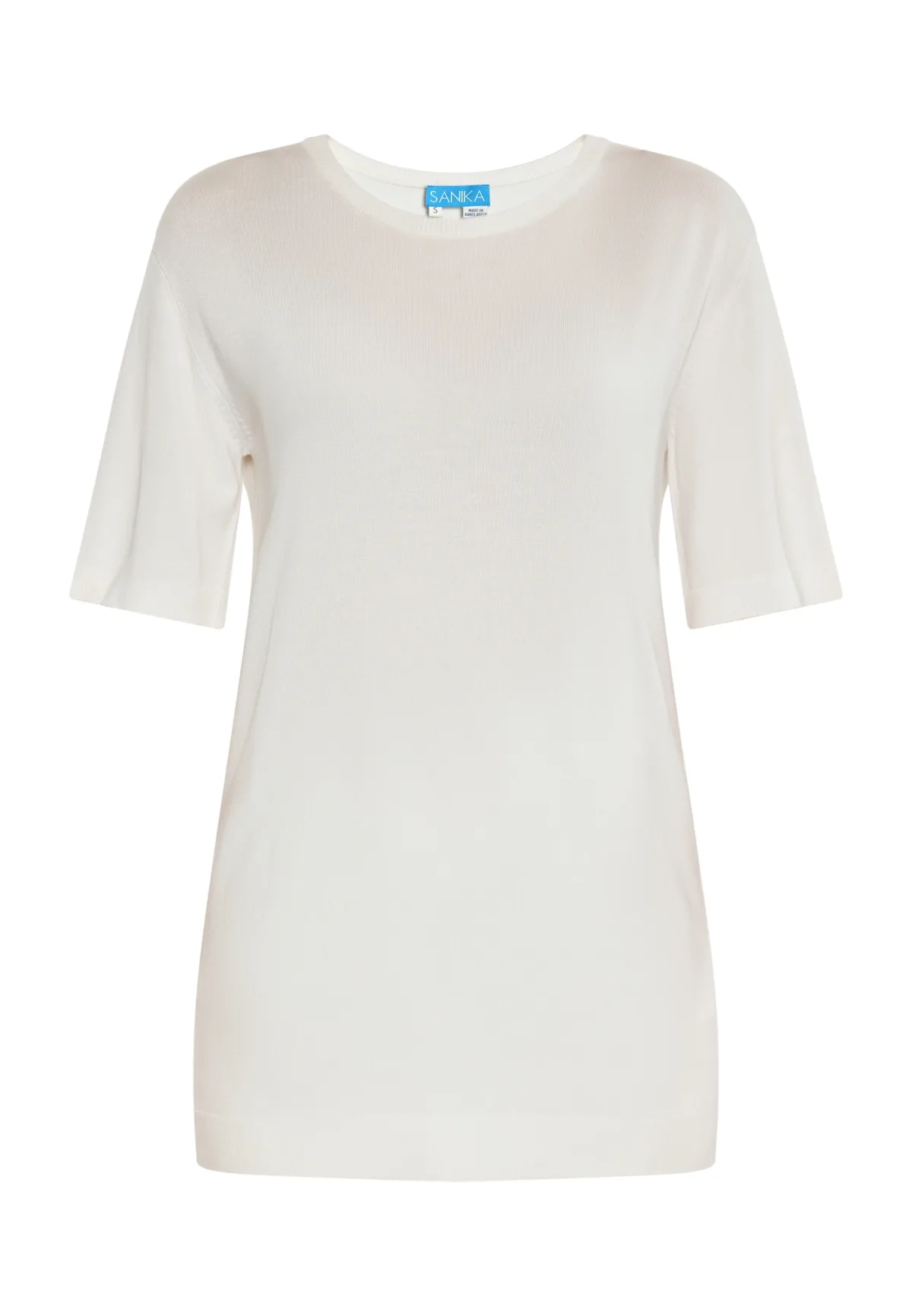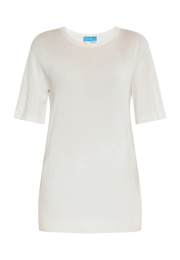 Design: Rechte zoom; Materiaal: Knitwear; Halstype: Ronde hals; Motief: Effen; Extra's: Voelt zacht aan; Pasvorm: Slanke pasvorm; Armlengte: Halve mouw; Lengte: Lange pasvorm