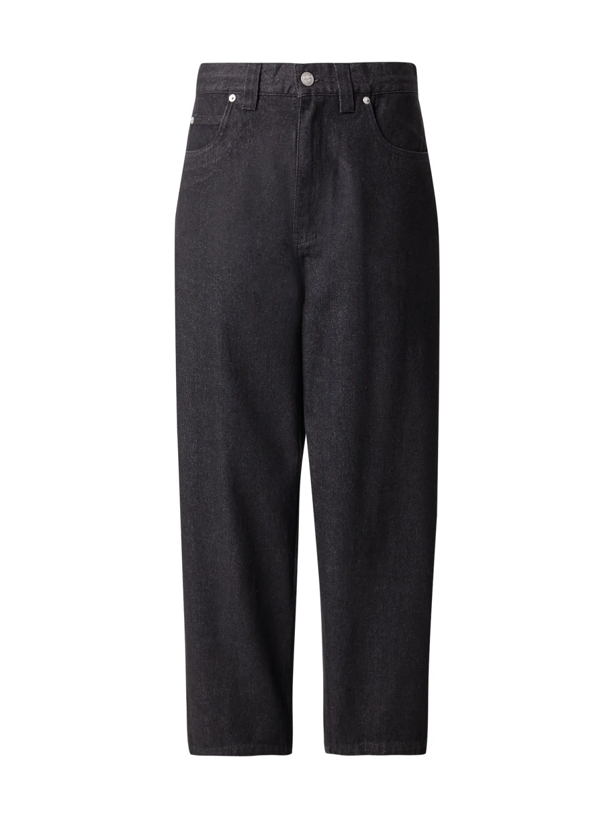 Design: Ritssluiting, 5-pocket-style; Type sluiting: Knoopsluiting; Materiaal: Denim; Motief: Effen; Extra's: Studs, Riemlussen; Wassing: Rinsed/dark washed; Lengte: Lang/maxi; Pasvorm: Baggy