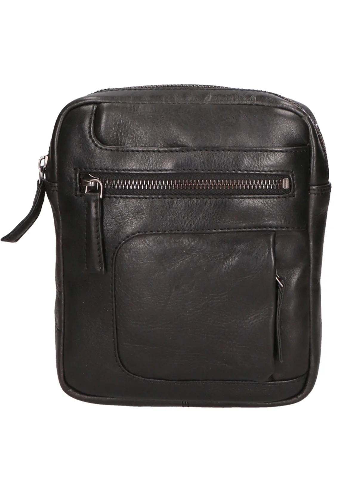 Verstelbare leren schoudertas voor heren. Handgemaakt product van echt, ingevet kalfshaar.