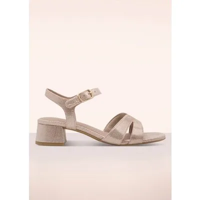 “Soft where it matters, shiny where it counts.” Deze sandaaltjes met blokhak hebben een brede pasvorm en zijn uitgevoerd in hoogwaardig zacht beige vegan suède met een zachte zool en een ingewerkt metallic zilver reptiel patroontje. * Sandaaltje * Brede pasvorm (breedtemaat H) * Verstelbaar bandje * Blokhak * Comfortabele binnenzool * Anti-slip zool * 100% vegan en vrij van dierlijke ingrediënten