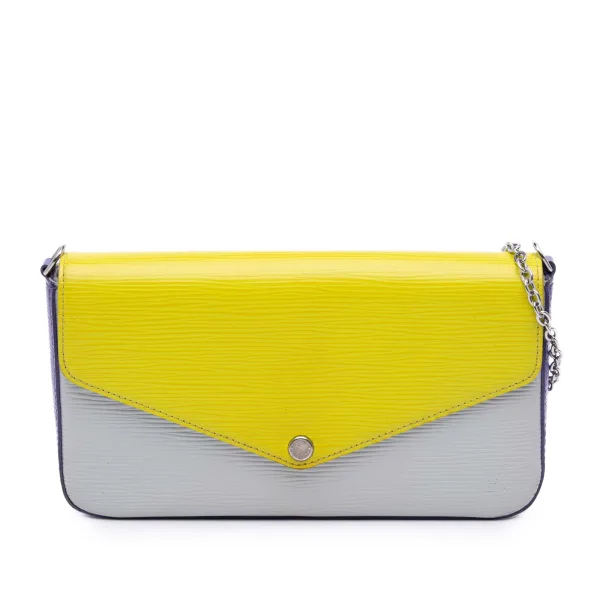 Verhoog, style en transformeer je look met de Vintage Sarah Wallet on Chain. Ontdek de tijdloze elegantie van dit tweedehands stuk, zorgvuldig vervaardigd uit de kenmerkende twee-tone Epi leer in levendig geel en verfijnd grijs. De slimme, verstelbare ketting biedt veelzijdige stijlopties, zodat je het kunt dragen als een chique schoudertas of een handsfree crossbody. Het duurzame Epi leer zorgt voor blijvende schoonheid, waardoor het een betrouwbare metgezel is voor de komende jaren. Perfect voor naadloos overgaan van dag naar avond, het is een essentieel accessoire voor elke gelegenheid, dat klassiek design mengt met moderne veelzijdigheid. Afmetingen: 21.5 x 3 Conditiebeoordeling: B+ Conditie-informatie: Achterkant van de buitenkant bevlekt met andere vlekken. Slot krasjes. Voorkant van de buitenkant bevlekt met andere vlekken. Binnenzak krasjes en slijtage. Binnenvoering bevlekt met verkleuring door andere vlekken. Praktische bevestiging krasjes. Bovenkant van de buitenkant slijtage. Rits krasjes.