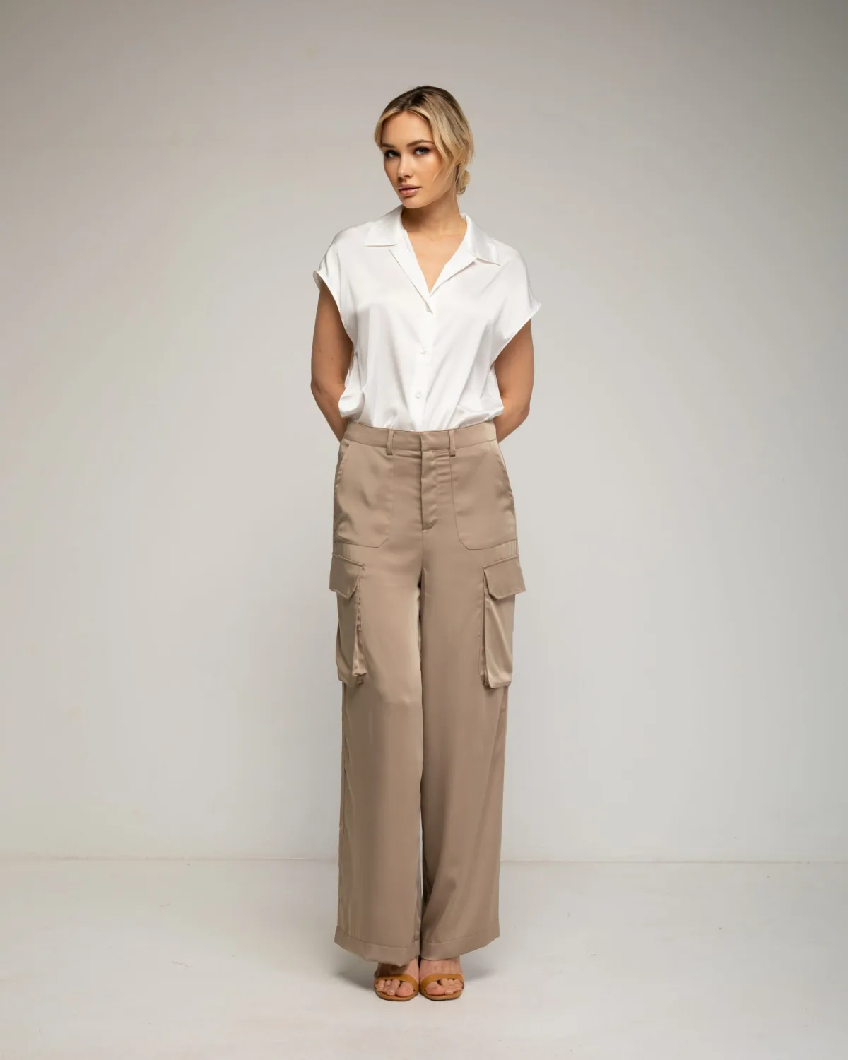 Satijnen cargo broek met zakken en recht model.