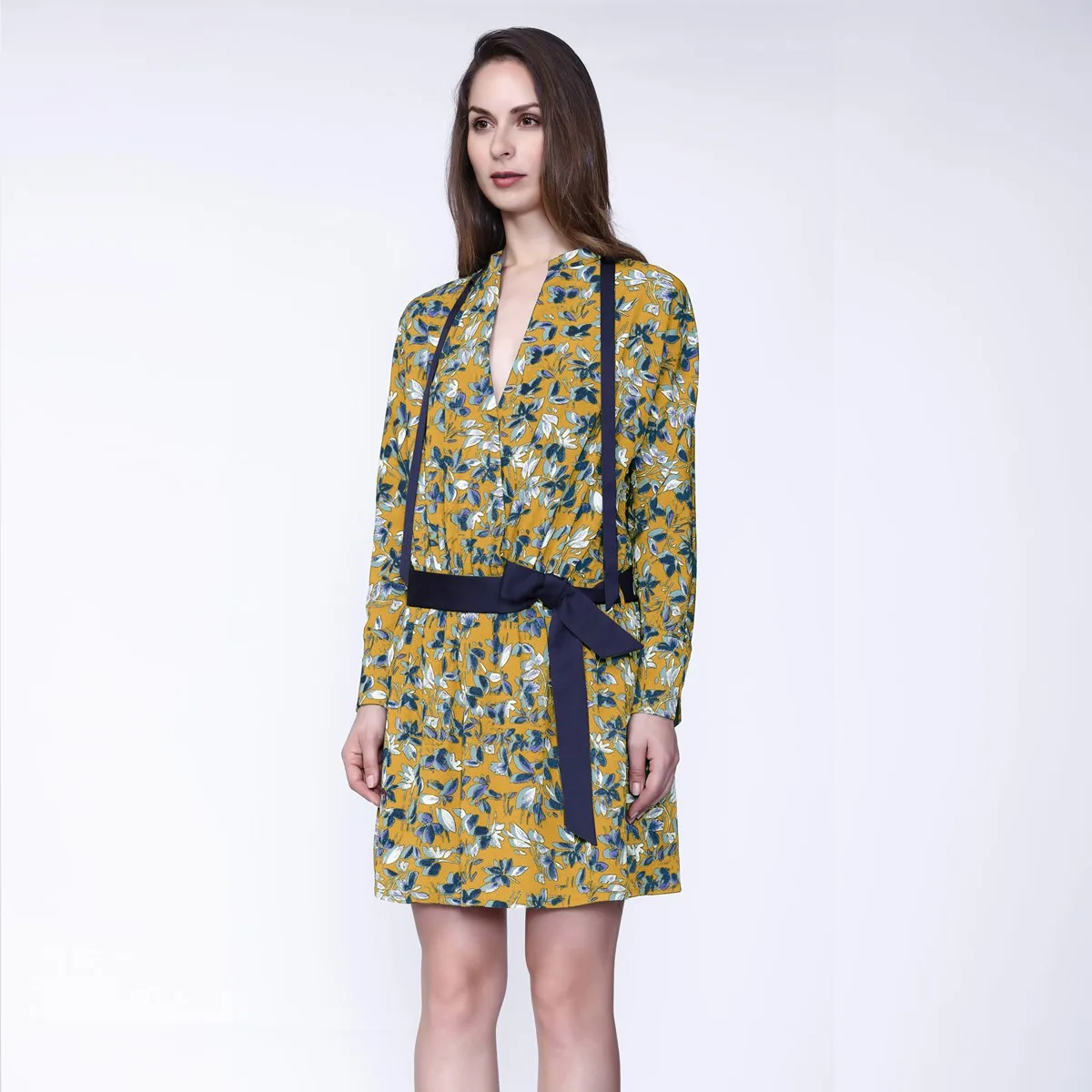 Specificaties: Satijnen kraag korte jurk en bladeren print