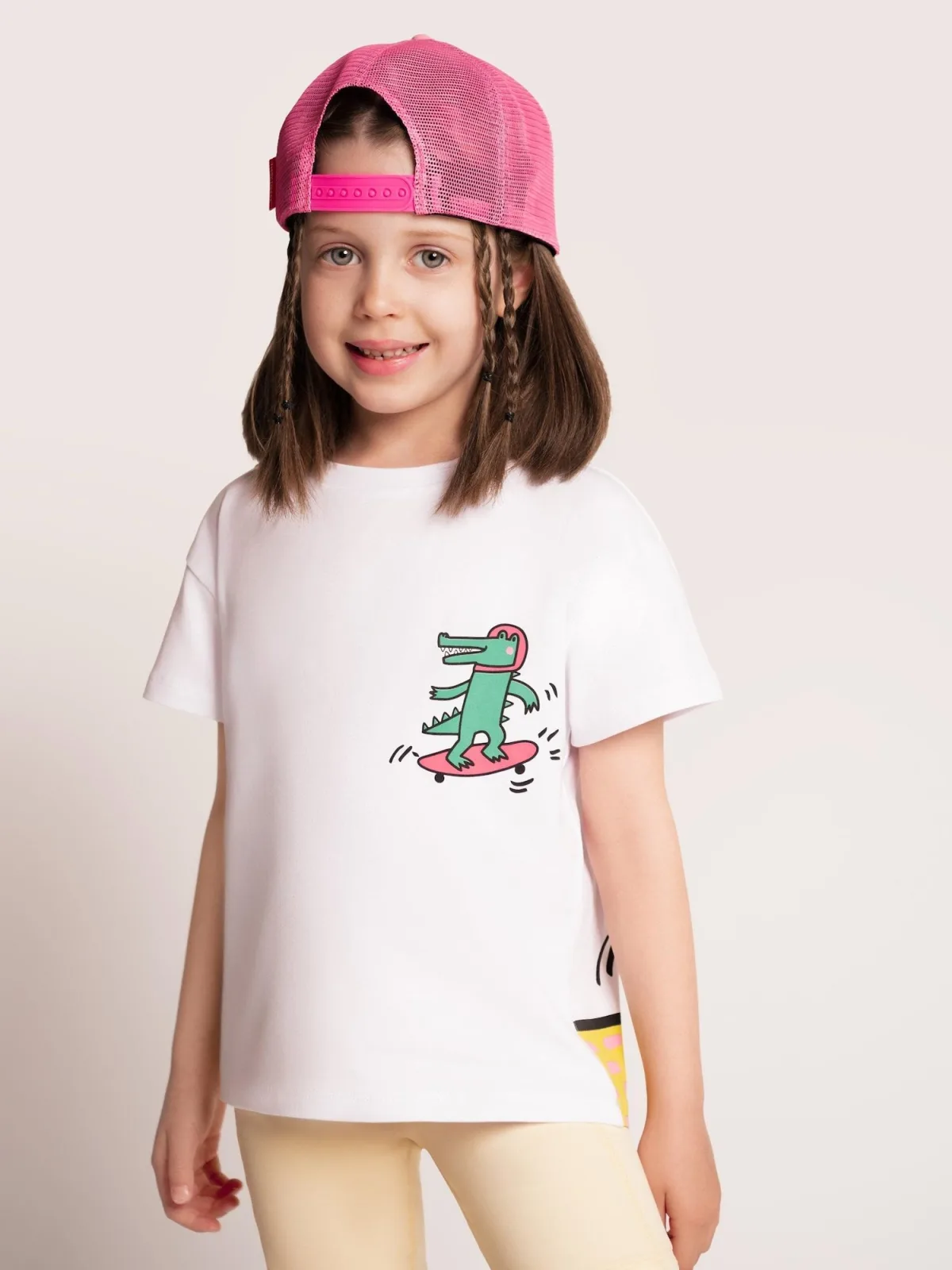 SATURNDAY Shirt ‘Krokodil auf Skateboard’ wit