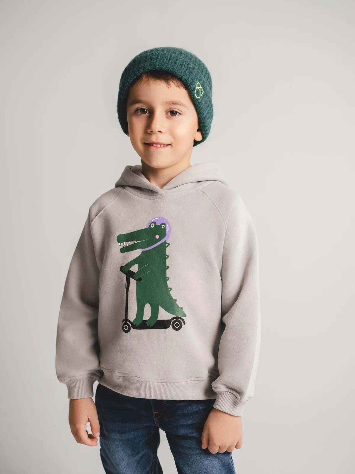 SATURNDAY Sweatshirt ‘Krokodil Scooter’ grijs