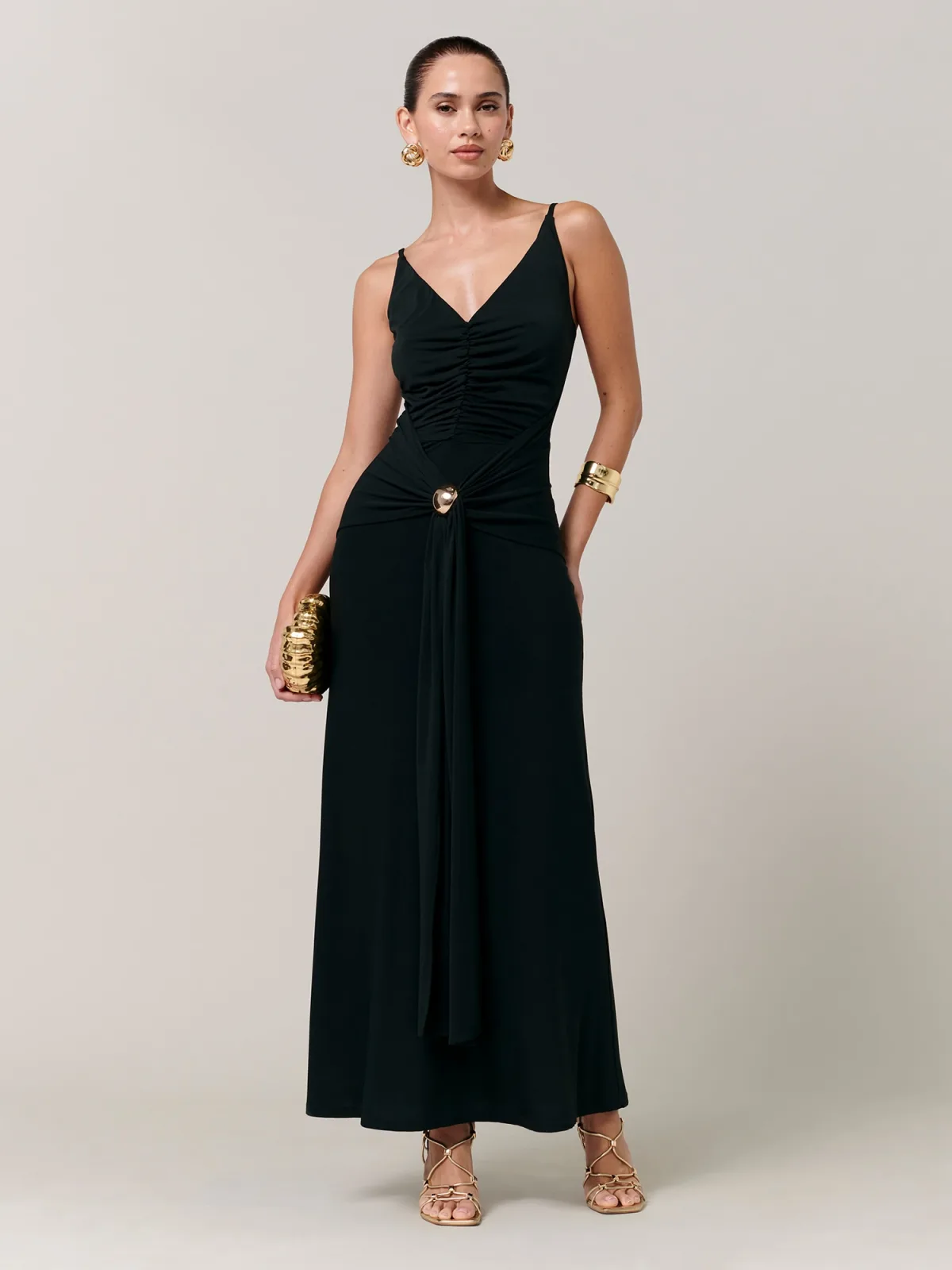 Design: Gevoerde zoom/rand, Rug rits, Diepe snit/decolleté; Type sluiting: Ritssluiting; Materiaal: Jersey; Halstype: V-hals; Motief: Effen; Soort bandjes: Normale bandjes; Details: Gedrapeerd; Extra's: Verstelbare bandjes, Applicaties, Op staal naden, Voelt zacht aan; Lengte: Lang/maxi; Snit: Getailleerd; Pasvorm: Slanke pasvorm; Armlengte: Mouwloos