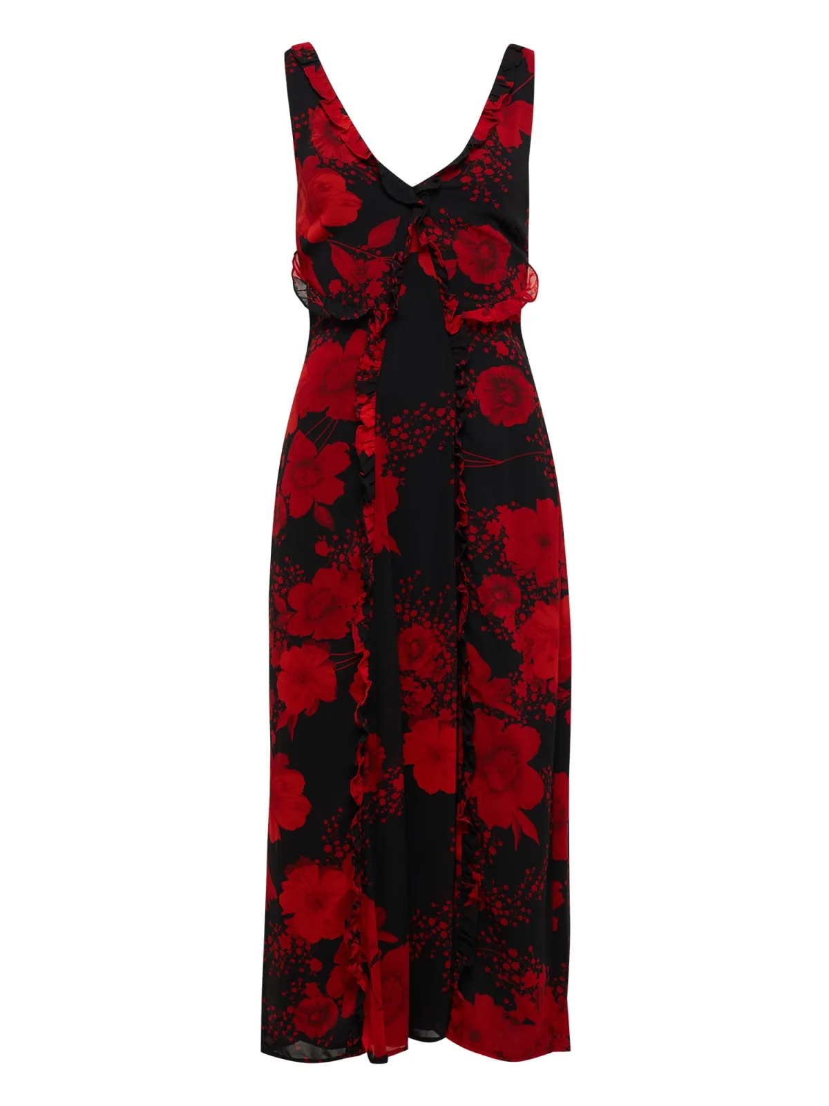 Halstype: V-hals; Motief: Bloemenprint; Soort bandjes: Normale bandjes; Details: Ruches; Lengte: 7/8 lengte; Pasvorm: Normale pasvorm; Armlengte: Mouwloos