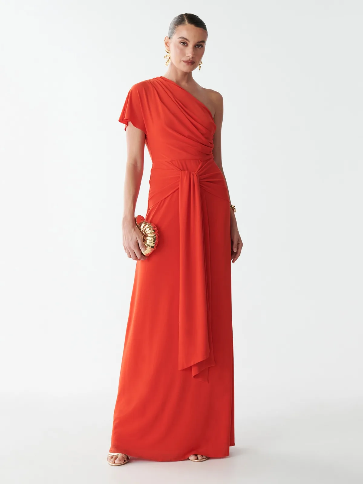 Design: Gevoerde zoom/rand, Zijdelingse inkepingen; Halstype: Carmen hals; Motief: Effen; Soort bandjes: One-shoulder; Extra's: Fully fashioned; Lengte: Lang/maxi; Pasvorm: Normale pasvorm; Armlengte: Kwartmouw