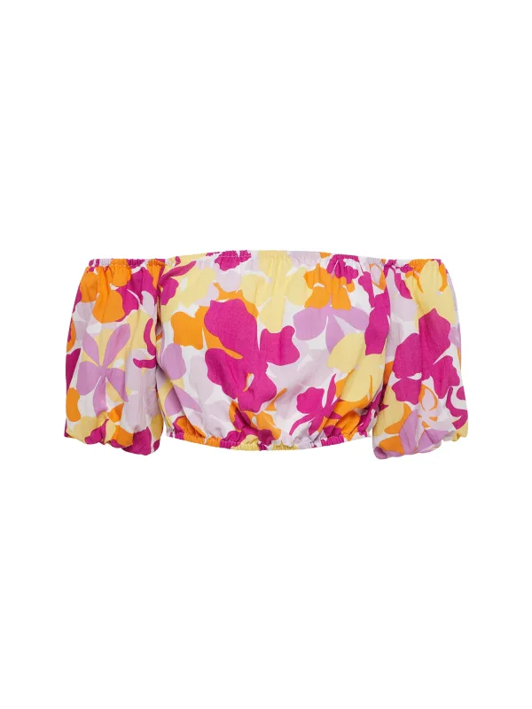 Materiaal: Jersey; Halstype: Carmen hals; Motief: Bloemenprint; Soort bandjes: One-shoulder; Details: Gedrapeerd; Pasvorm: Normale pasvorm; Armlengte: Mouwloos; Lengte: Korte pasvorm