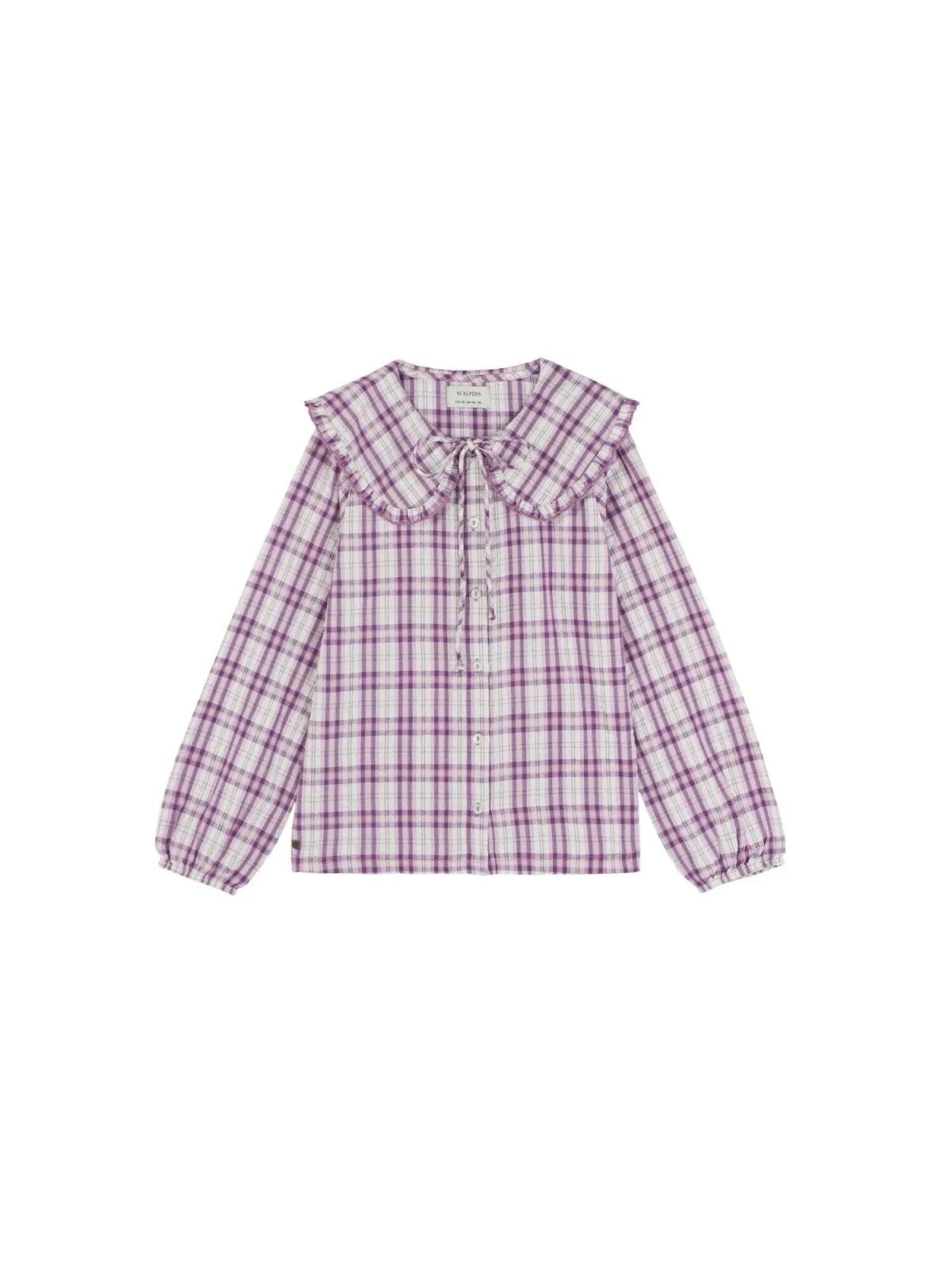 Design: Elastische taille/zoom, Knop placket, Met band/snoer, Zoom/rand met boord, Om te knopen/binden; Type sluiting: Knoopsluiting; Materiaal: Katoen; Motief: Geruit; Kraag: Strik; Details: Ruches; Extra's: All-over patroon, Voelt zacht aan; Pasvorm: Normale pasvorm; Armlengte: Lange mouw; Lengte: Normale lengte