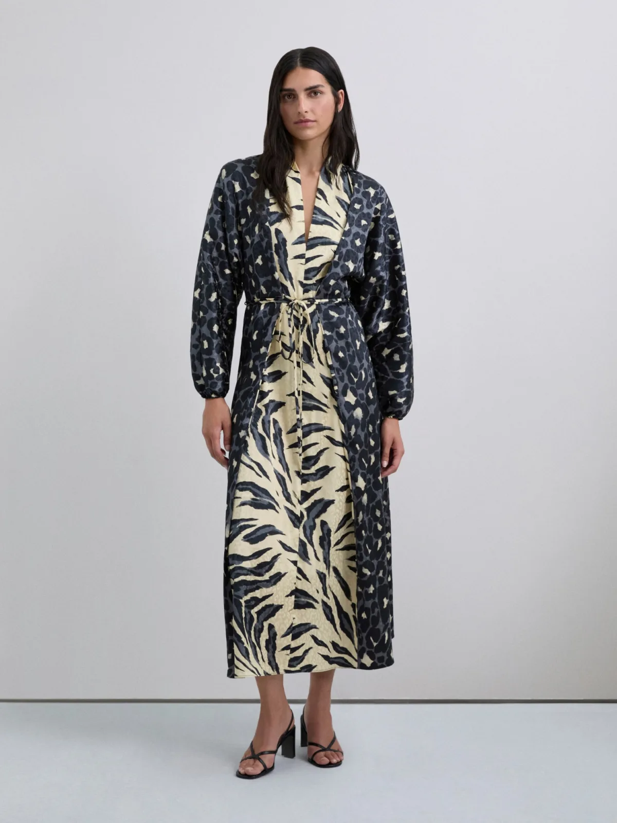 Type sluiting: Clip sluiting; Halstype: V-hals; Motief: Dierenprint; Lengte: Knielengte; Pasvorm: Normale pasvorm; Armlengte: Lange mouw