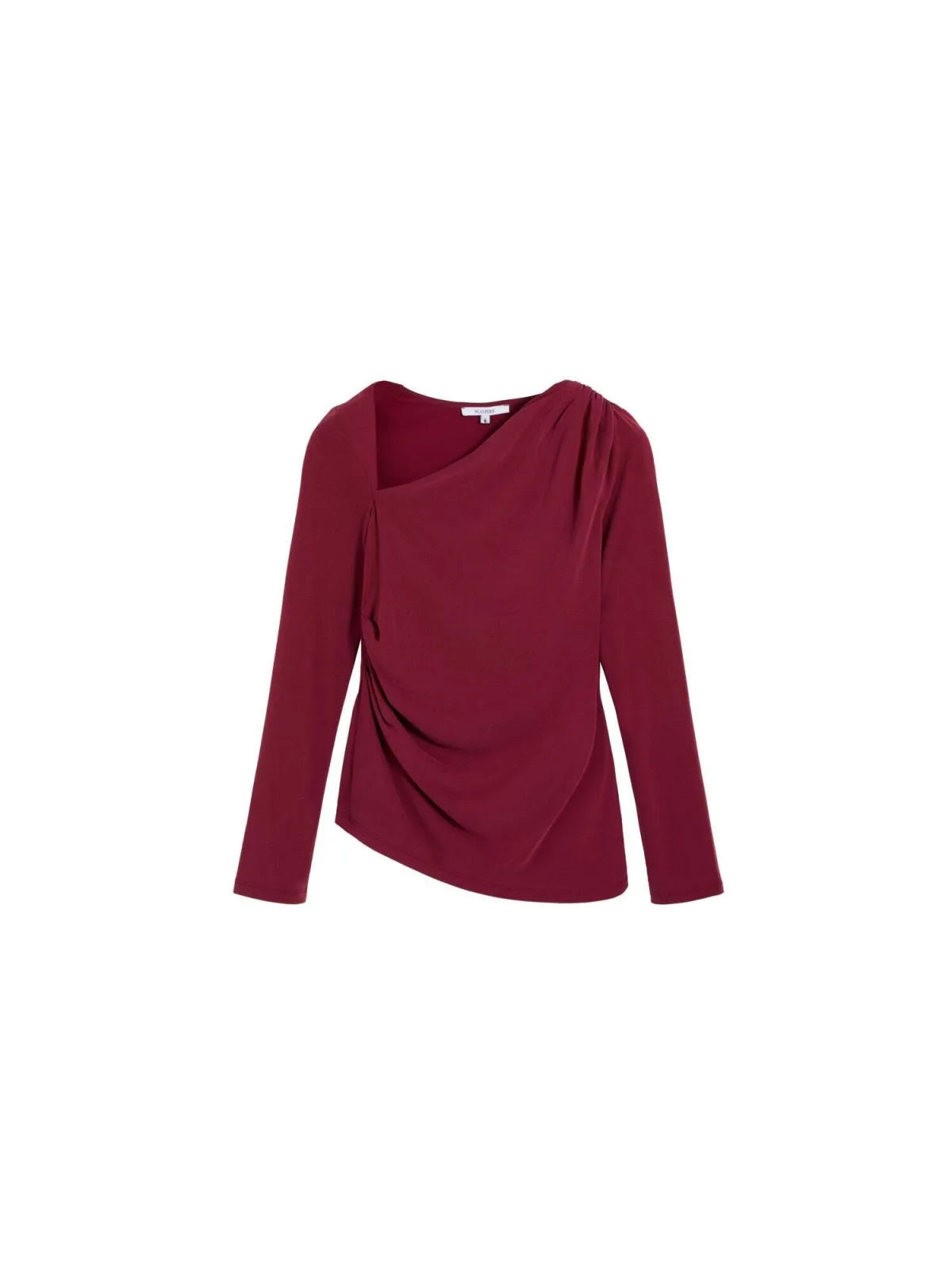Design: Ronde zoom; Materiaal: Jersey; Motief: Effen; Details: Cut-outs, Gedrapeerd; Extra's: Op staal naden; Pasvorm: Normale pasvorm; Armlengte: Lange mouw; Lengte: Normale lengte