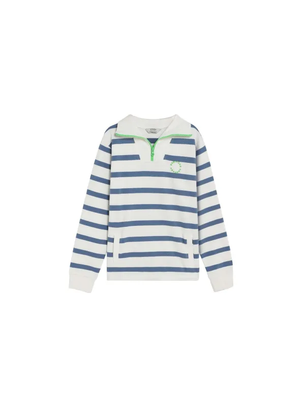 Design: Geribd ceintuurtje, Zakken aan de zijkant, Halve rits; Type sluiting: Ritssluiting; Materiaal: Sweatstof; Halstype: Schipperskraag; Motief: Gestreept; Extra's: All-over patroon; Pasvorm: Normale pasvorm; Armlengte: Lange mouw