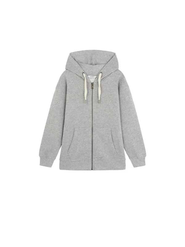 Design: Geribd ceintuurtje; Type sluiting: Ritssluiting; Materiaal: Sweatstof; Halstype: Capuchon; Motief: Mélange; Extra's: Voelt zacht aan; Pasvorm: Normale pasvorm; Armlengte: Lange mouw; Lengte: Normale lengte