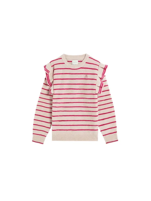 Design: Geribbelde kraag, Geribd ceintuurtje; Materiaal: Knitwear; Halstype: Ronde hals; Motief: Gestreept; Details: Ruches; Extra's: All-over patroon; Pasvorm: Normale pasvorm; Armlengte: Lange mouw; Lengte: Normale lengte