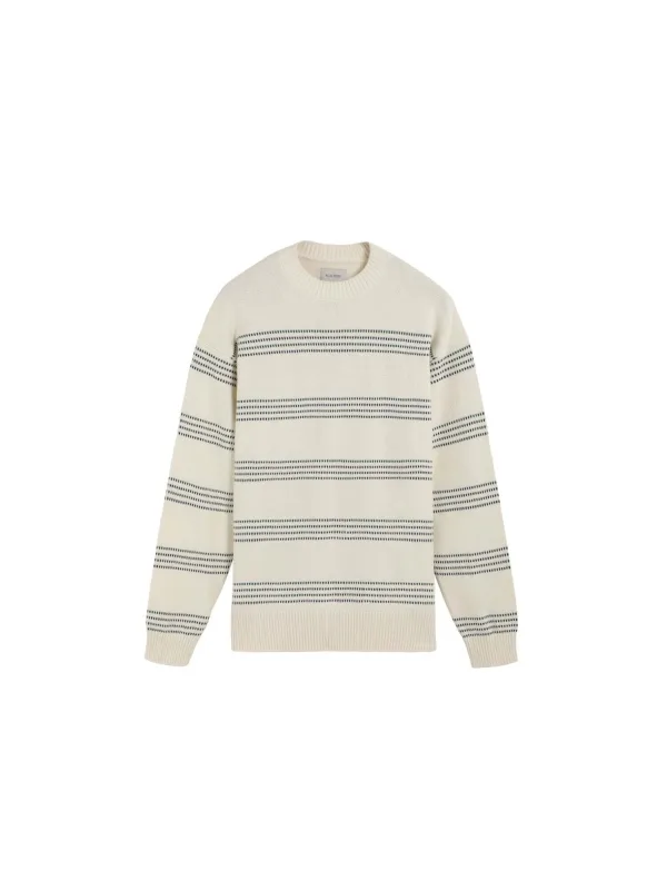 Design: Geribbelde kraag; Materiaal: Knitwear; Halstype: Ronde hals; Motief: Gestreept; Extra's: All-over patroon, Fully fashioned; Pasvorm: Normale pasvorm; Armlengte: Lange mouw