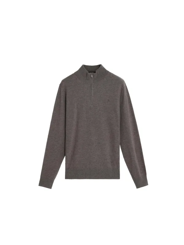 Design: Geribd ceintuurtje; Type sluiting: Ritssluiting; Materiaal: Knitwear; Halstype: Schipperskraag; Motief: Mélange; Extra's: Fully fashioned; Pasvorm: Normale pasvorm; Armlengte: Lange mouw