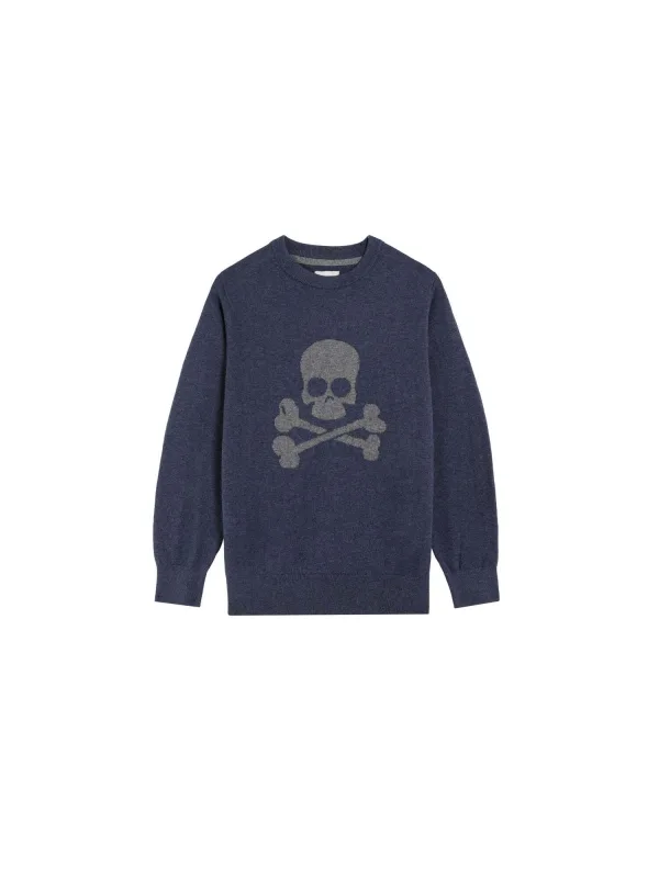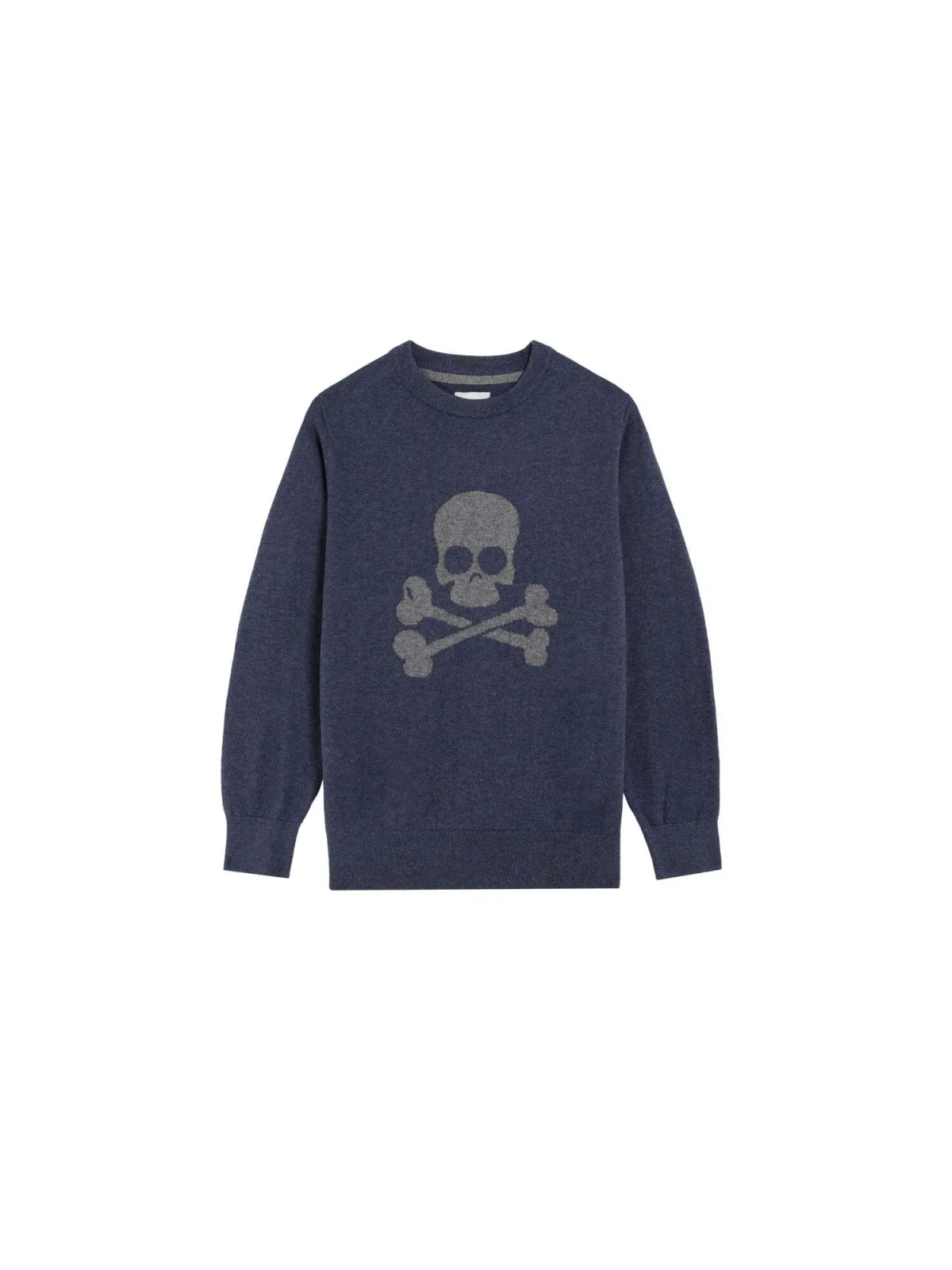 Scalpers Trui ‘Skull Intarsia’ marine / grijs