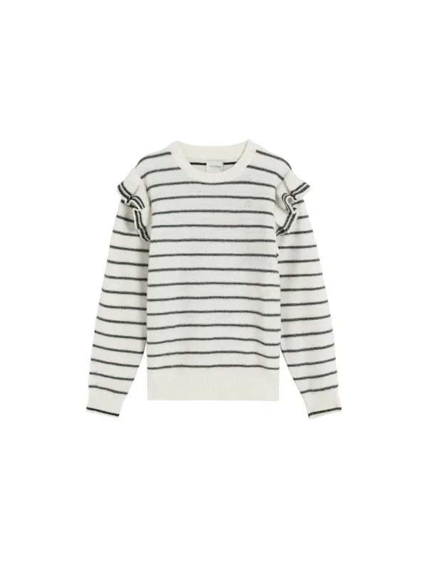 Materiaal: Wol; Halstype: Ronde hals; Motief: Gestreept; Details: Volant; Pasvorm: Normale pasvorm; Armlengte: Lange mouw; Lengte: Normale lengte