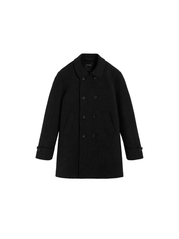Type mantel: Klassieke mantel; Design: Knop placket, Zijvakken; Type sluiting: Knoopsluiting; Voering: Licht gevoerd; Materiaal: Wol; Motief: Effen; Extra's: Op staal naden, Overdekte knopen; Pasvorm: Normale pasvorm; Lengte: Normale lengte