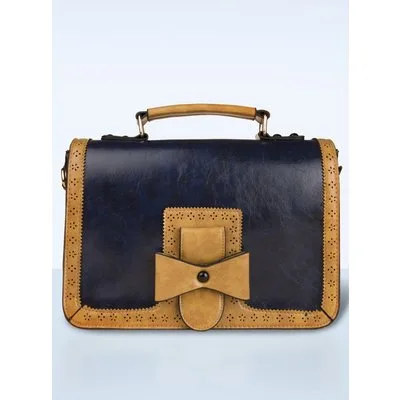 Waarom deze handtas 'Scandal' heet? Omdat ze schandalig mooi is! Ze is voorzien van bloemachtige uitsneden, gekartelde biesjes en een strikdetail voorop. Uitgevoerd in camel- en navyblauw imitatieleder, afgewerkt met een kort hengsel en een lang afneembaar hengsel waardoor je deze office beauty op veel manieren kunt dragen. ''Behind every successful woman is a fabulous handbag'' ;-) * Verborgen magneetsluiting * Ritssluiting * 3 extra vakjes aan de binnenkant, waarvan 1 met rits * Kort hengsel * Wordt geleverd met een los, verstelbaar hengsel * Kan crossbody gedragen worden * Groot genoeg voor je telefoon, portemonnee, sleutels en toilettasje