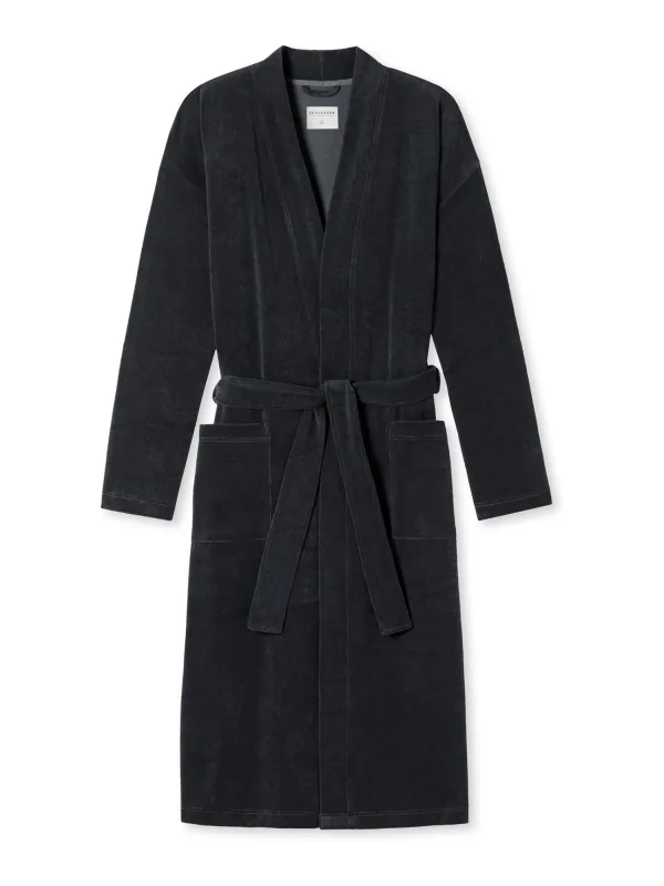SCHIESSER Badjas lang ‘ Feather Terry ‘ antraciet